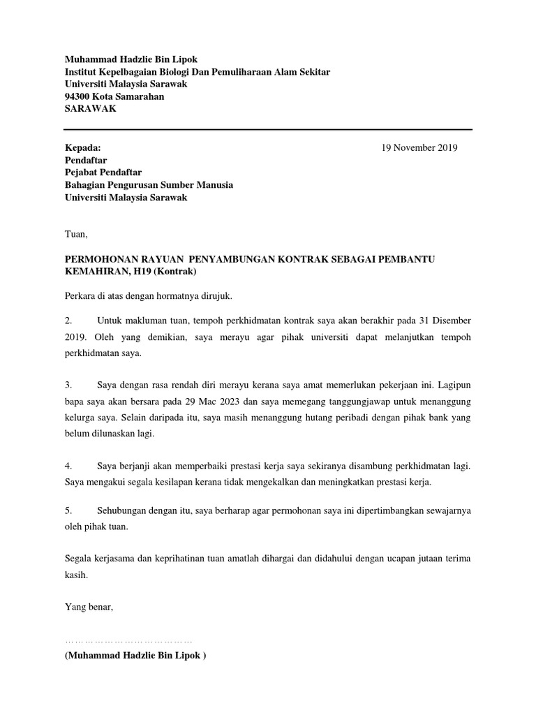 Contoh Surat Sambung Kontrak Perkhidmatan Contoh Surat Berhenti Kerja Contoh Surat Sambung Kontrak Perkhidmatan Cute766 Zhiping Satryo